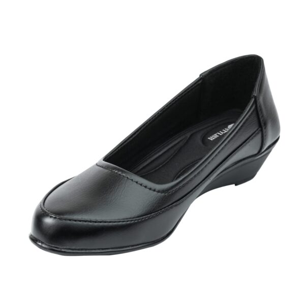 STYLISH Women Slingback Wedge Heel Shoes, Black, Textured Synthetic Leather, Round Toe, Slip-Resistant Sole, Office Wear