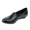 Upgrade your everyday footwear collection with these elegant black slip-on shoes designed for both comfort and style. Crafted with a smooth, polished finish, these shoes offer a sophisticated look suitable for office wear, formal occasions, and daily use. The slip-on design ensures easy wearability, while the cushioned insole provides all-day comfort. The lightweight wedge heel adds subtle height without compromising stability, making them perfect for long hours on your feet. Durable and versatile, these shoes are a must-have addition to your wardrobe.